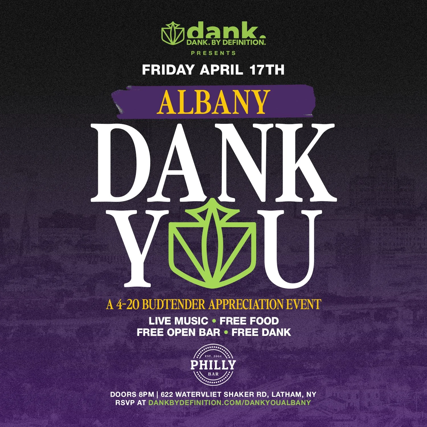 We’re bringing together Albany’s budtenders for a private 4/20 celebration — good energy, great people, and a first look at what’s next from DANK.